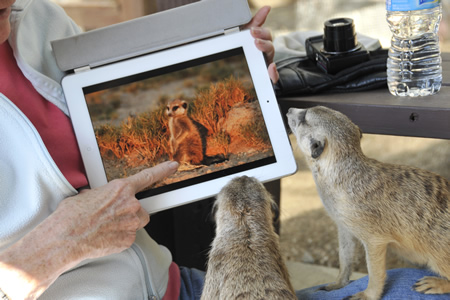 The African tours that Dantes Liebenberg and I do together for clients each year benefit the meerkats at Fellow Earthlings’ Wildlife Center enormously because a small percentage of each client’s tour fee is donated to the meerkats.